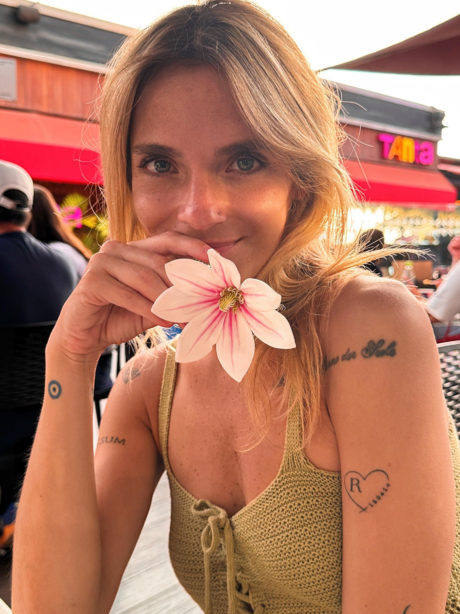 • Flor blanca con rosado